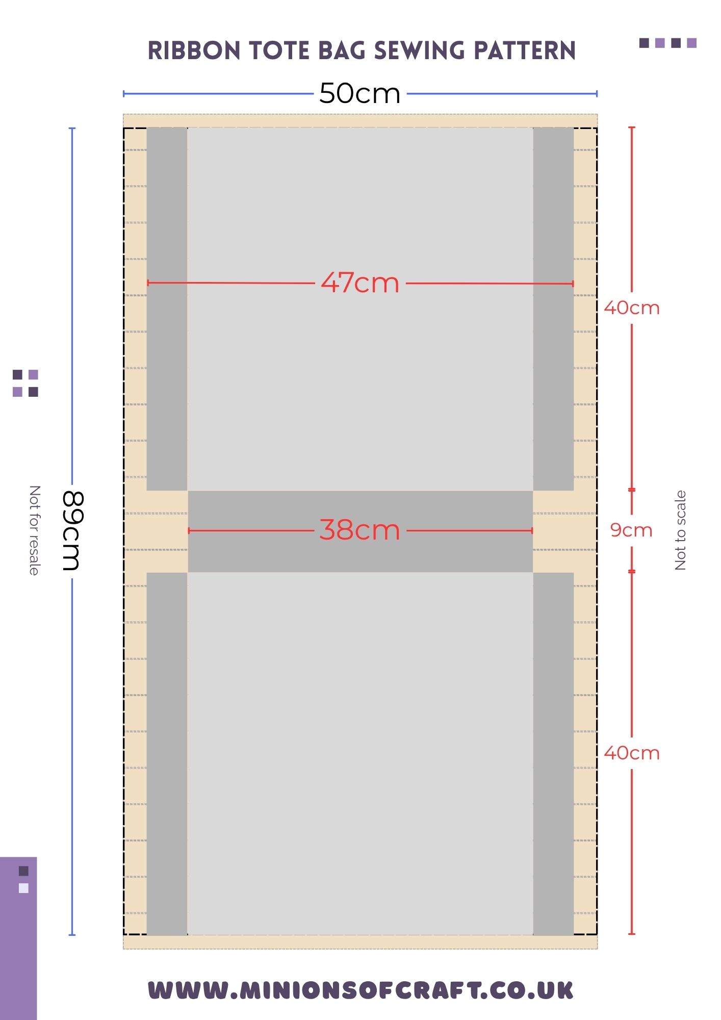 For the ‘regular’ tote bag, I wanted my bag to be 38cm wide by 40cm high, and 9cm deep.